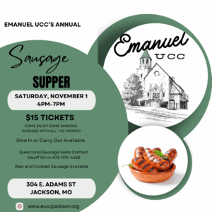 Join us for our annual sausage supper with all the fixings! Come support the mission and ministry of Emanuel UCC.